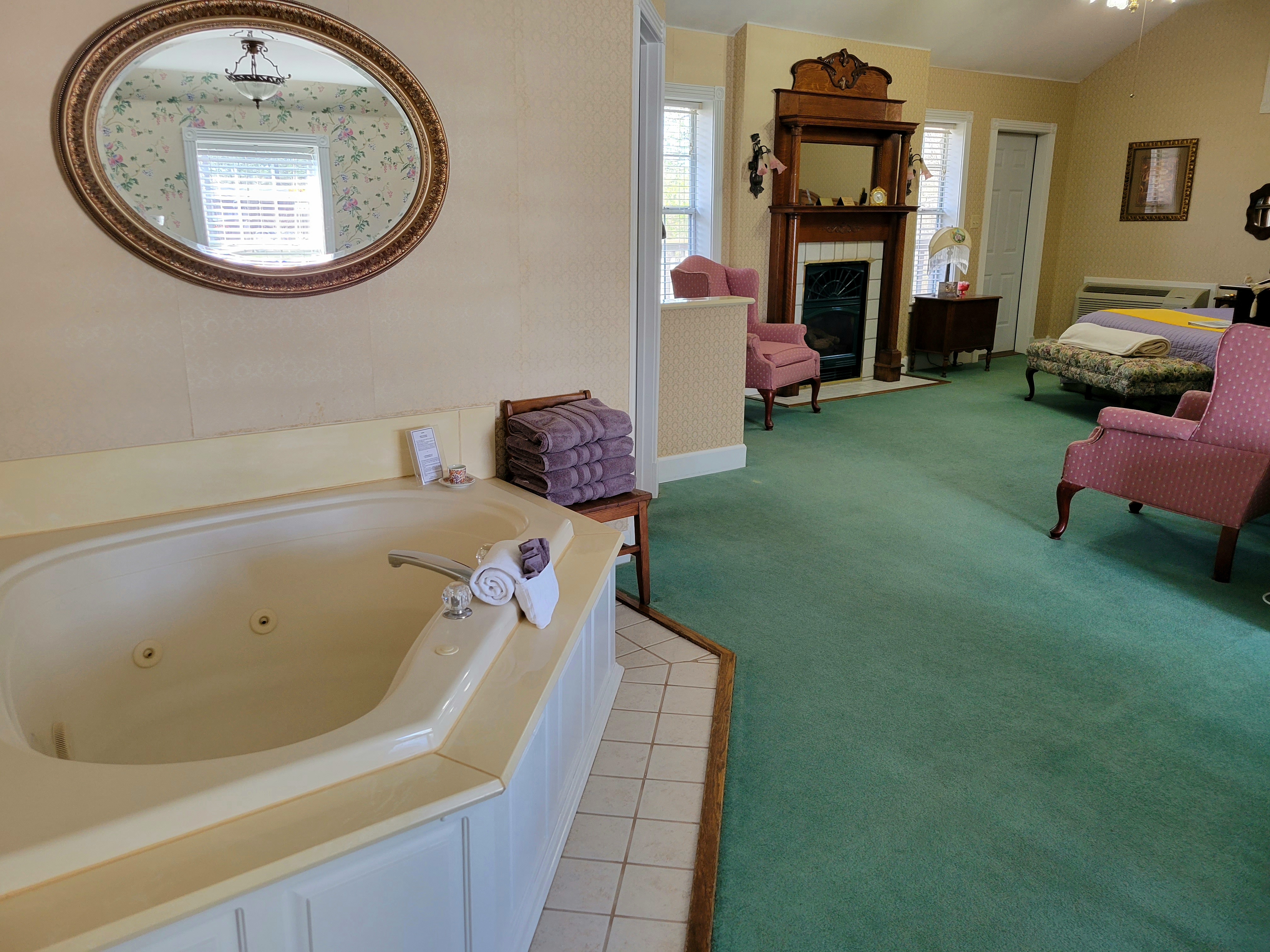 All of our suites are very large with a king sized bed. Evening Shade Inn has rooms filled with special extras for an extraordinary getaway. Each suite has ample deck space, private exterior entry, and is surrounded by our beautiful wooded property. There are numerous outdoor spaces to sit and relax. This is a great place to unwind after travel or a fun filled day of activity in a really cool town.