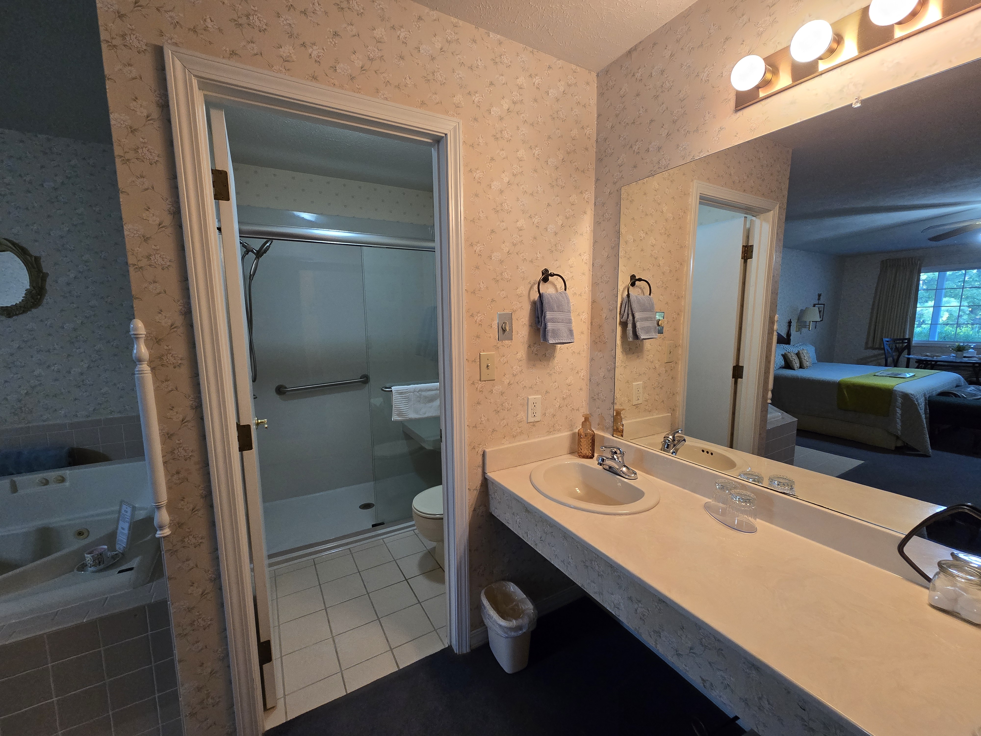 All of our suites are very large with a king sized bed. Evening Shade Inn has rooms filled with special extras for an extraordinary getaway. Each suite has ample deck space, private exterior entry, and is surrounded by our beautiful wooded property. There are numerous outdoor spaces to sit and relax. This is a great place to unwind after travel or a fun filled day of activity in a really cool town.